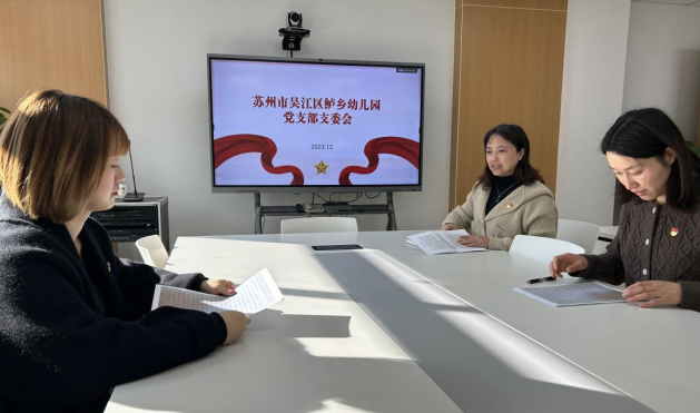 2023年12月13日下午,鲈乡幼儿园党支部委员集中流虹园区会议室,召开12月份支委会,会议由支部书记鲁敏主持。
