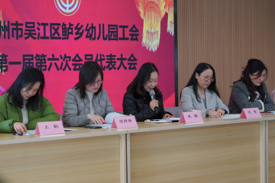 苏州市吴江区鲈乡幼儿园教育集团工会第一届第六次教职工代表大会于2024年1月9日召开,本次教代会中心议题有四个:1.朱静总园长作2023年度鲈乡幼儿园工作报告2. 经审委公布2022年度工会财务审计报告3.答复教代会代表提案4.公布2023年第一届第六次教代会优秀提案获奖名单、2023年鲈乡幼儿园“工会积极分子”名单、2023年鲈乡幼儿园“师德标兵”“模范教师”获奖名单。